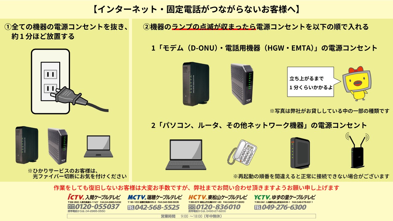 平素よりケーブルテレビ、ケーブルプラス電話をご利用頂きまして、